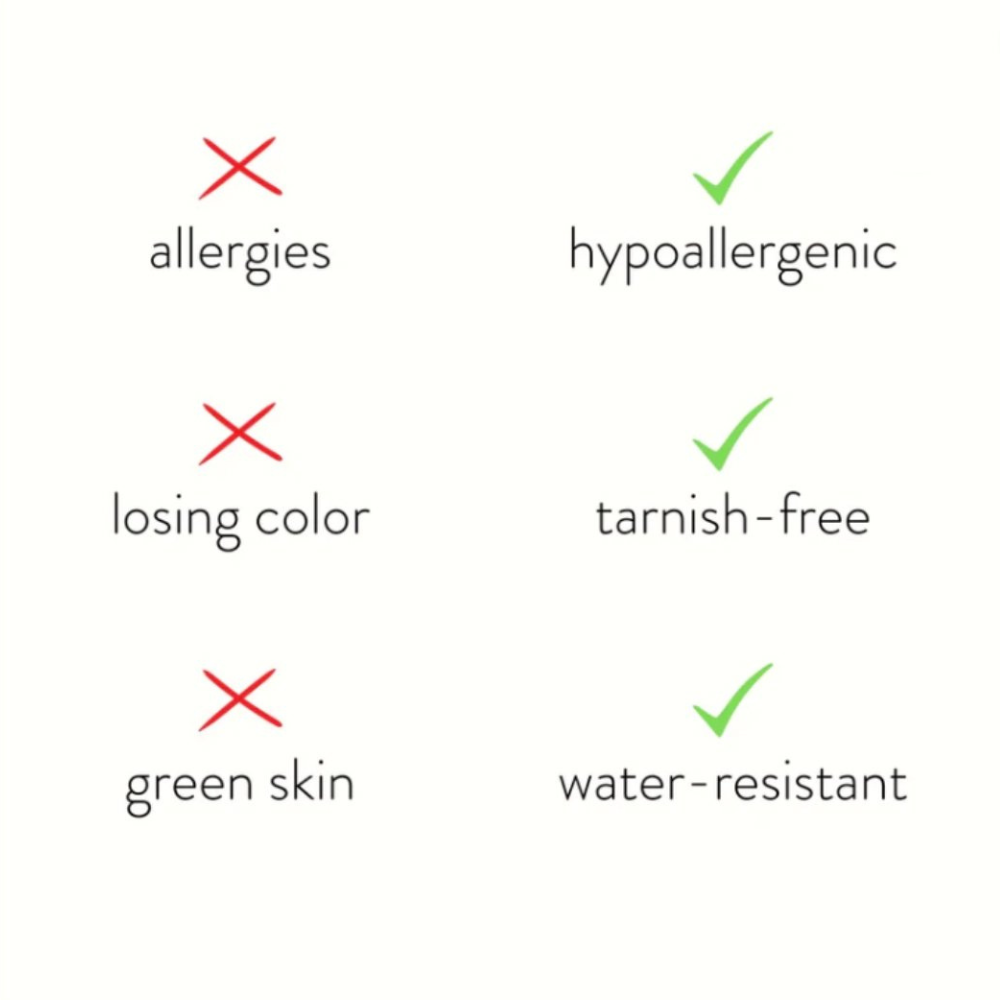 Made with waterproof stainless steel, you never need to worry about fading or tarnishing jewelry ever again.
