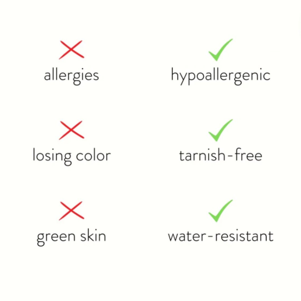 Made with waterproof stainless steel, you never need to worry about green fingers, fading or tarnishing jewelry ever again!